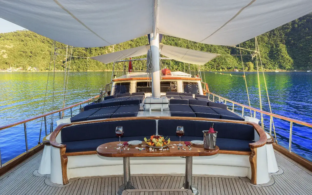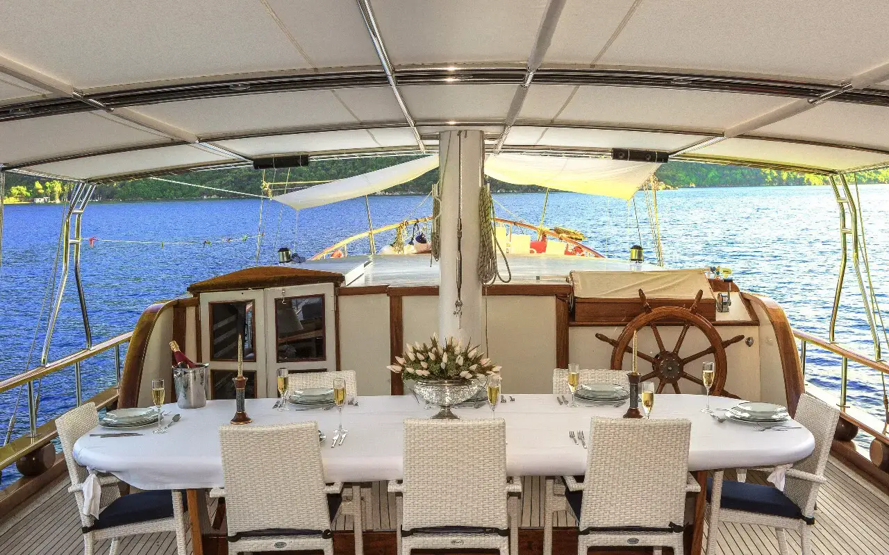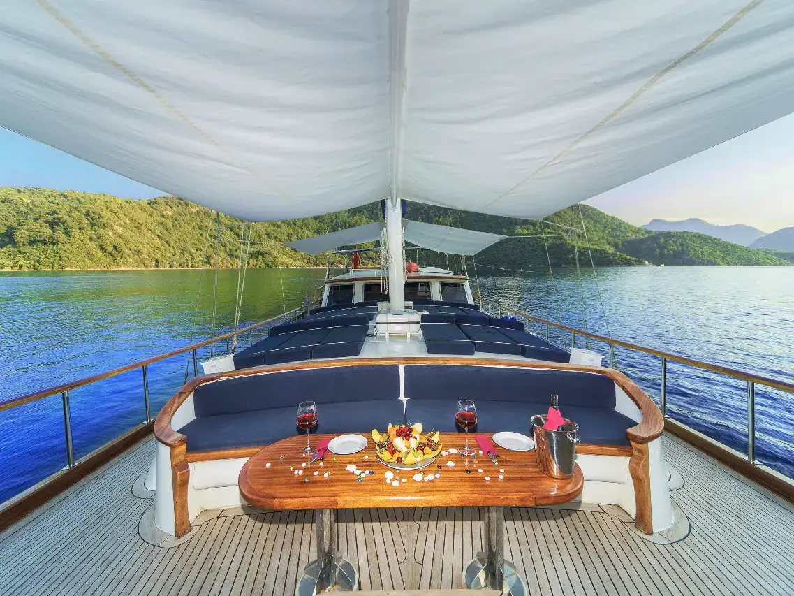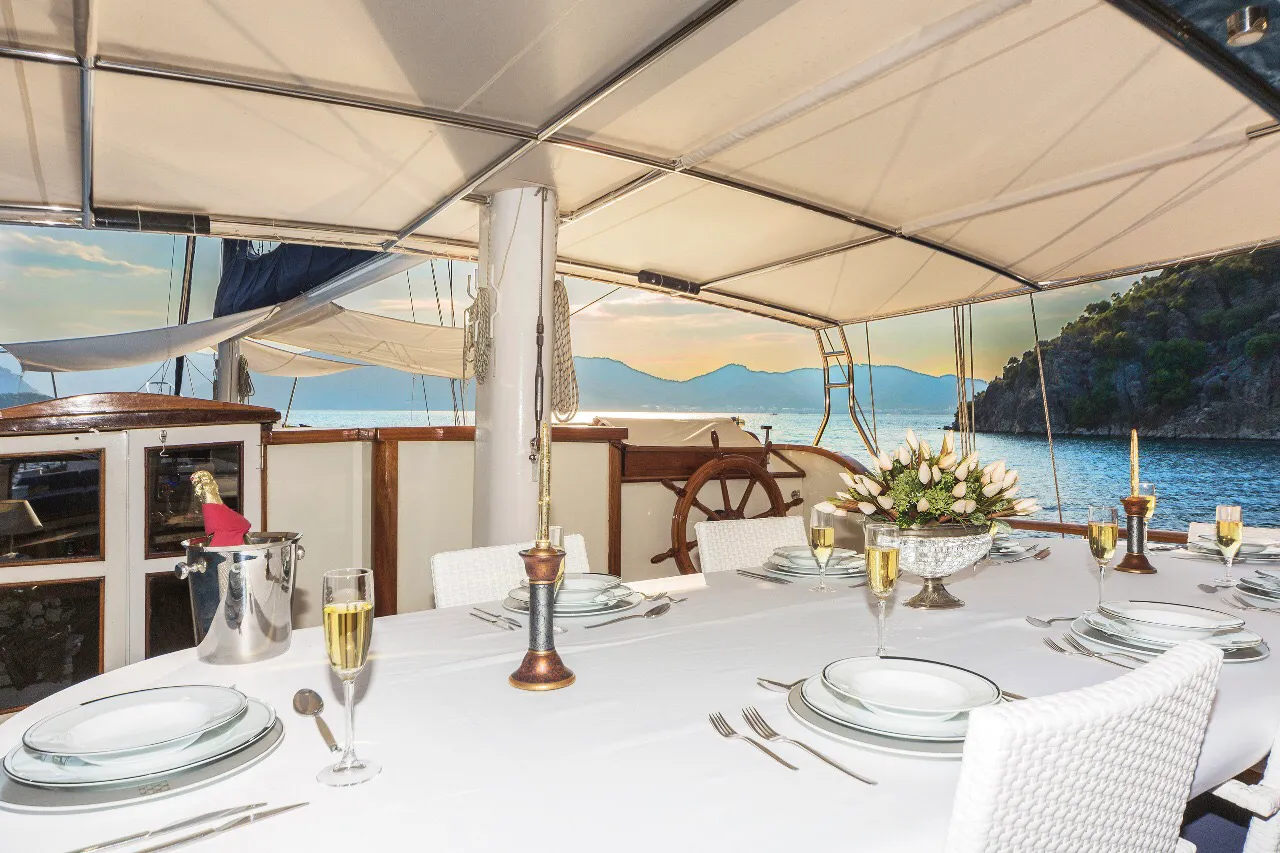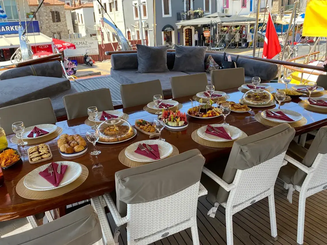 - Onboard Gastronomy: Our chefs are masters of the Aegean and Mediterranean kitchens. We offer flexible Full Board packages—ranging from Luxury to Deluxe menus—featuring fresh seafood, local organic produce, and authentic Turkish cuisine.