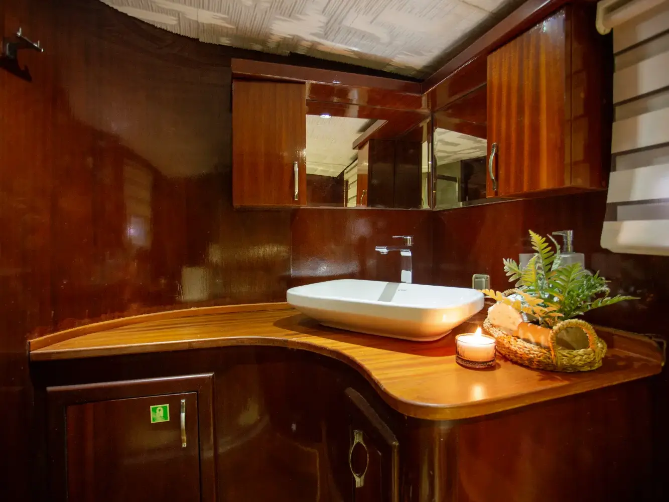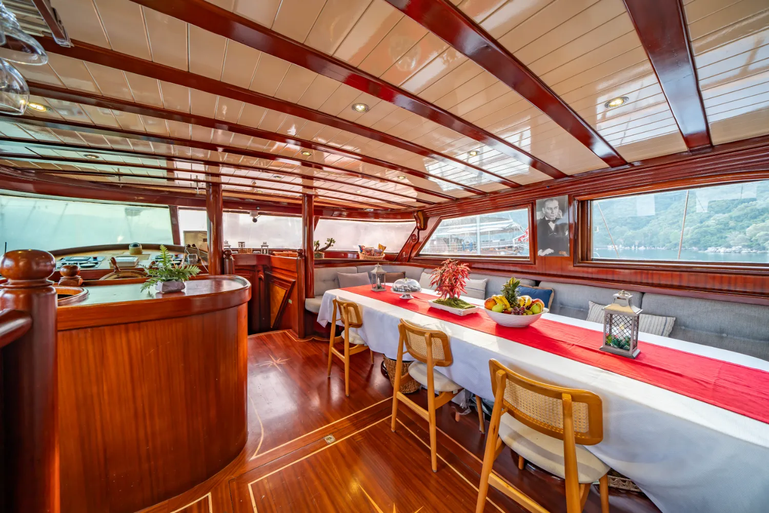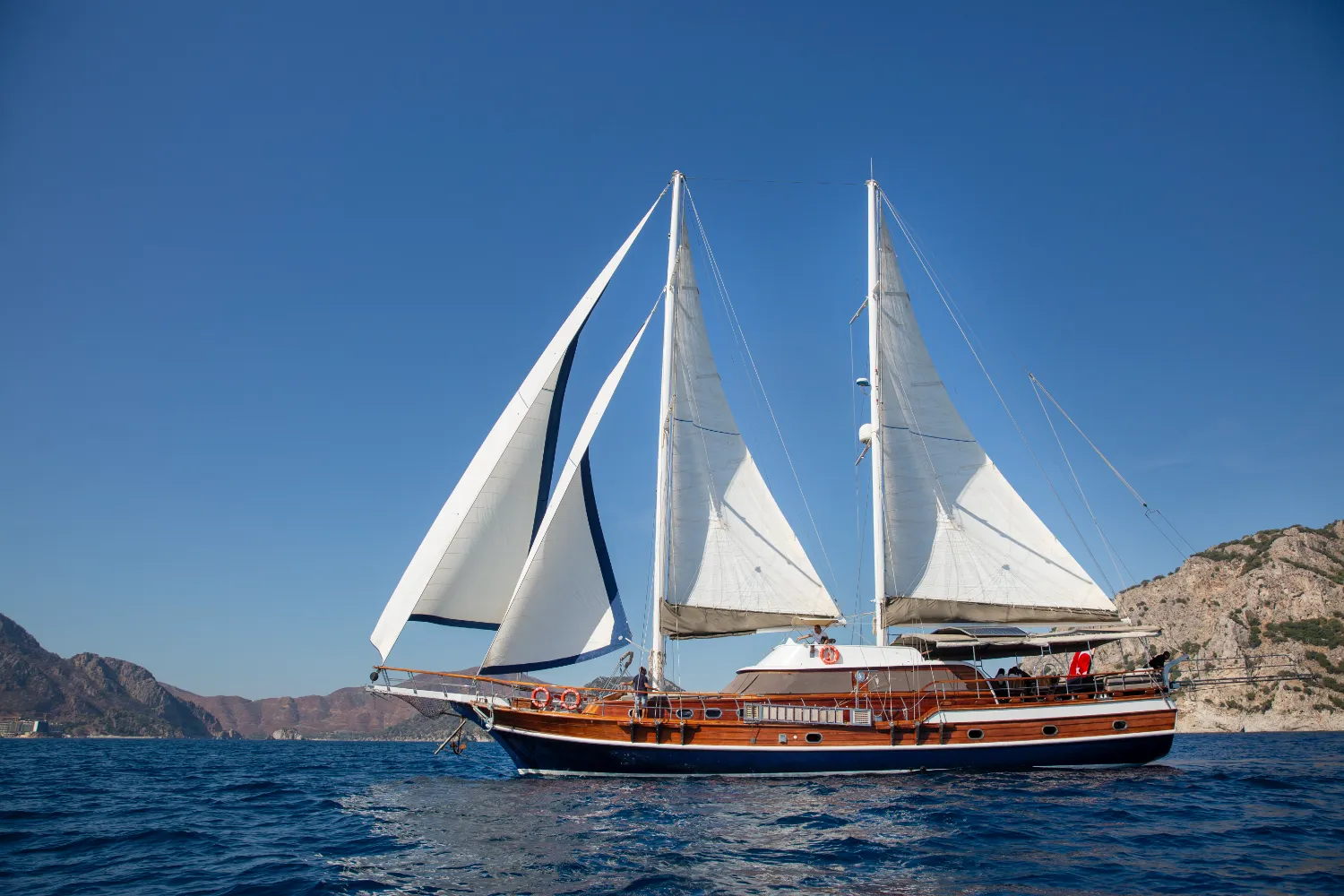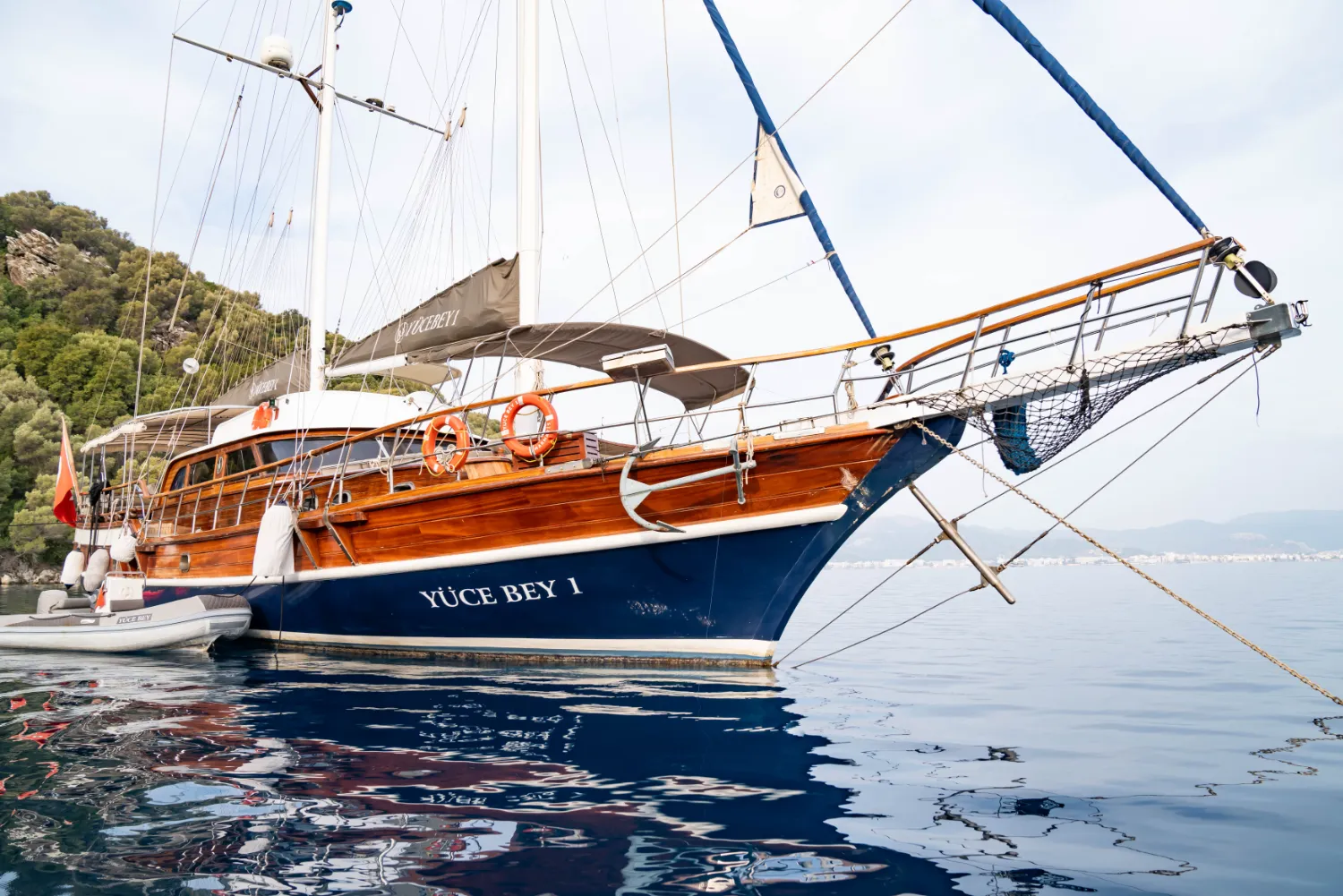Yüce Bey 1 is a refined 23.90-meter luxury gulet that stands as a testament to timeless design, constructed from rich mahogany and teak. Originally built in 2008 and meticulously refitted in 2023, this vessel combines classic maritime elegance with modern sophistication. She offers a spacious and comfortable layout with a beam of 6.80 meters, accommodating up to 10 guests in 5 well-appointed cabins—including one Master, two Double, and two Twin suites. Every cabin is designed for privacy and relaxation, featuring air conditioning, ensuite facilities, and personal televisions.