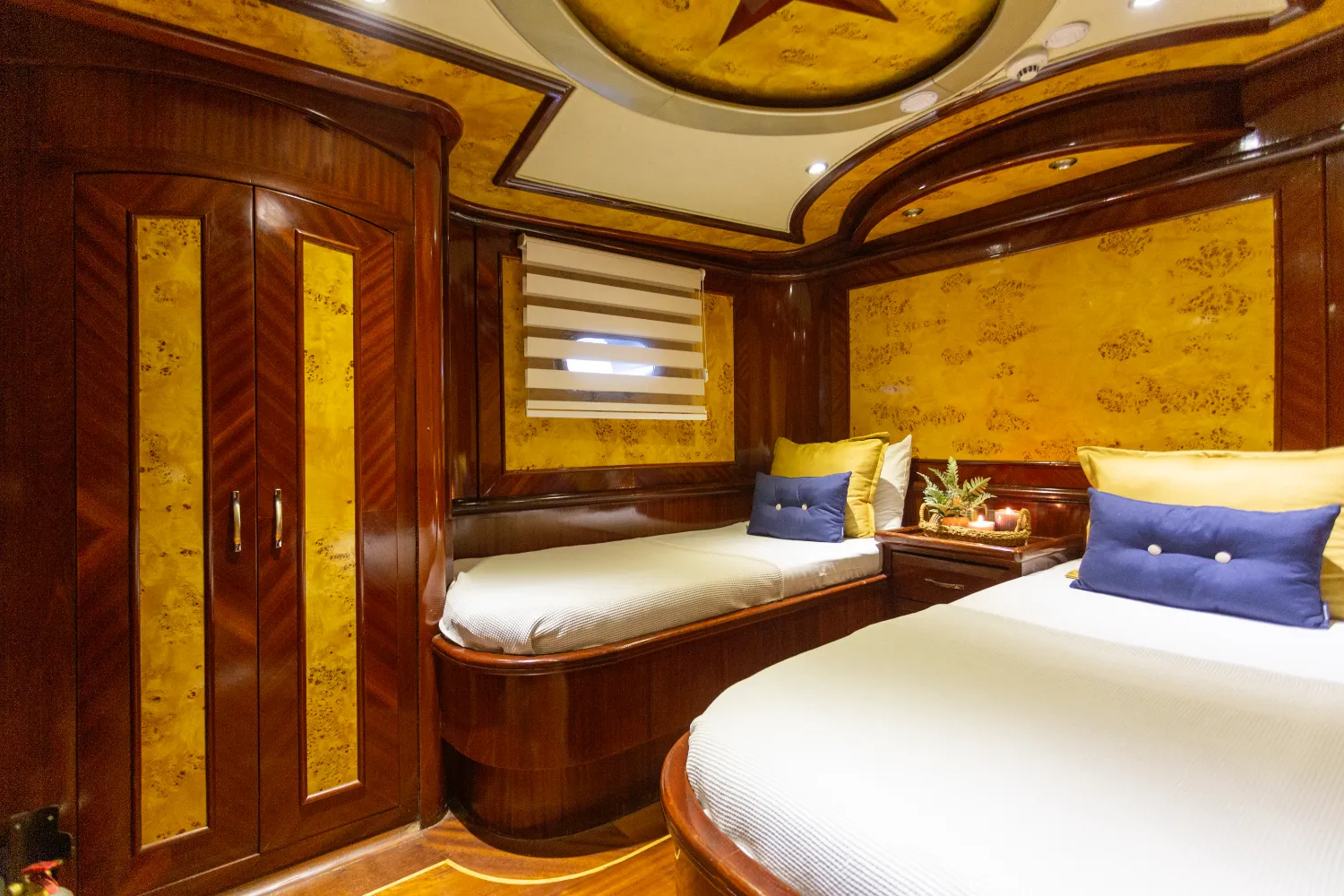 Cabin Configuration: 1 Master Cabin, 2 Double Cabins, 2 Twin Cabins.