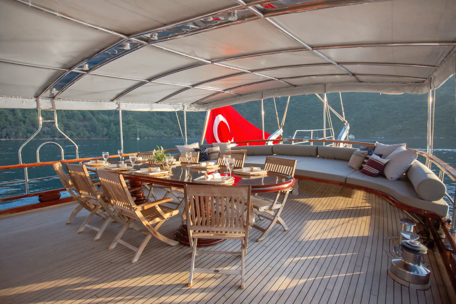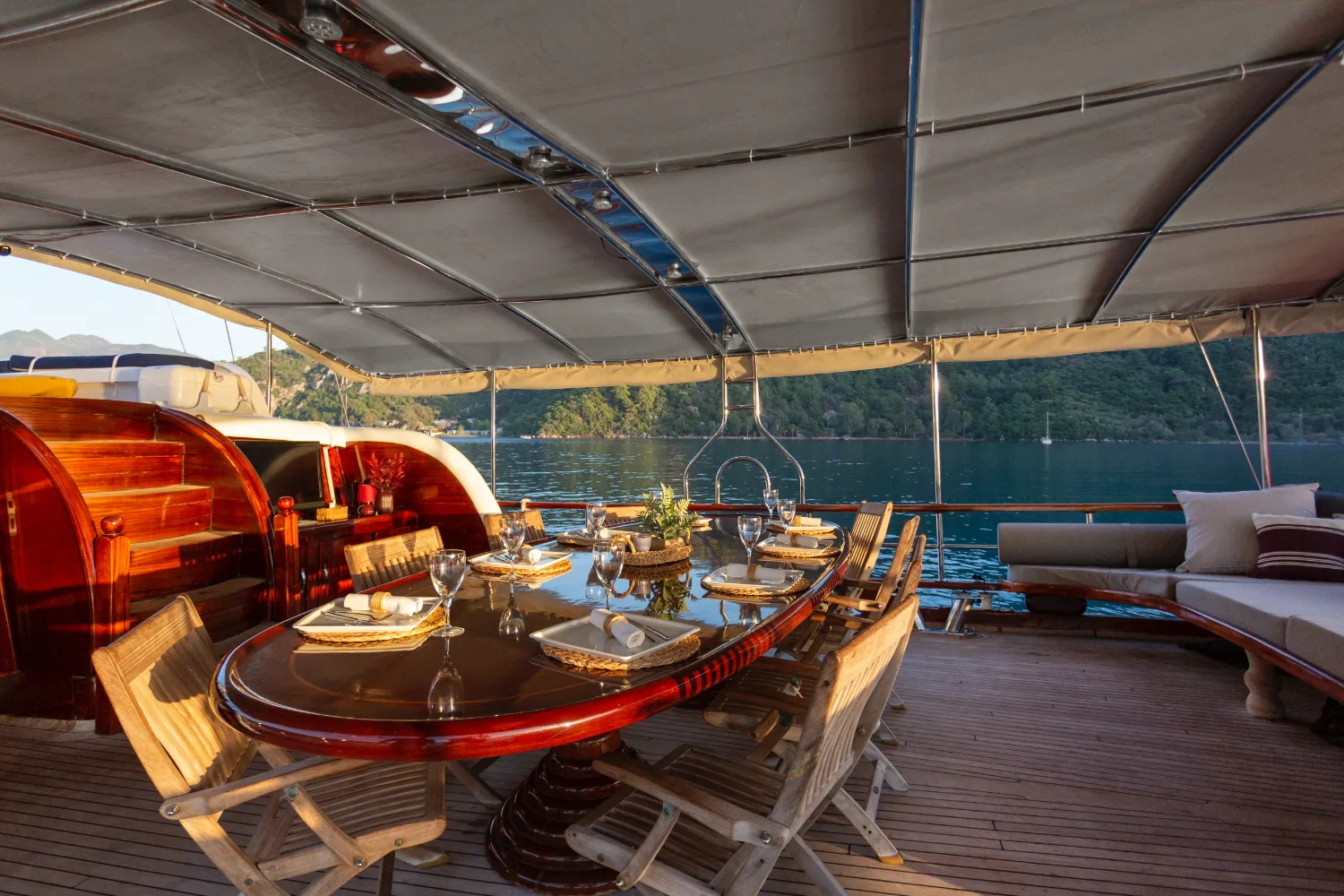 - Onboard Gastronomy: Our chefs are masters of the Aegean and Mediterranean kitchens. We offer flexible Full Board packages—ranging from Luxury to Deluxe menus—featuring fresh seafood, local organic produce, and authentic Turkish cuisine.